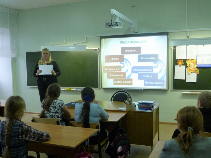 В конце первой четверти в школе деревни Вахонино, Вахонинского поселения было много интересных встреч с представителями различных организаций и ведомств. 20 октября состоялось межведомственное взаимодействие отделения по работе с семьей и детьми. Психологи провели мероприятие "Жизнь без агрессии", в котором участвовали ученики 5-9 классов. Дети живо реагировали на представленную презентацию, откровенно отвечали на поставленные вопросы, рассказывали о своих чувствах. Психологи Антонина Сергеевна Кретова и Виктория Евгеньевна Тугарева внимательно выслушали ребят, дали им профессиональные советы.